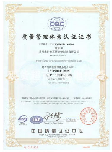 百泰鋼管自1997年公司創建以來,公司規模不斷擴大,經過十五年的市場洗禮,憑借優秀的產品質量以及廣泛的市場份額,已經成為浙江地區知名不銹鋼管制造企業。公司主要生產不銹鋼自動焊接管、無縫管、衛生級管、異性鋼管等,產品主要應用于石油、石化、天然氣、城市燃氣、取暖蒸汽等領域,也廣泛應用于造紙、啤酒生產、建筑工程、城市供水等領域,為眾多知名工程提供優質產品,如大慶油田石油管道工程、新疆天然氣長輸管道工程、中亞天然氣管線工程、南水北調引黃工程、川氣東送工程等。